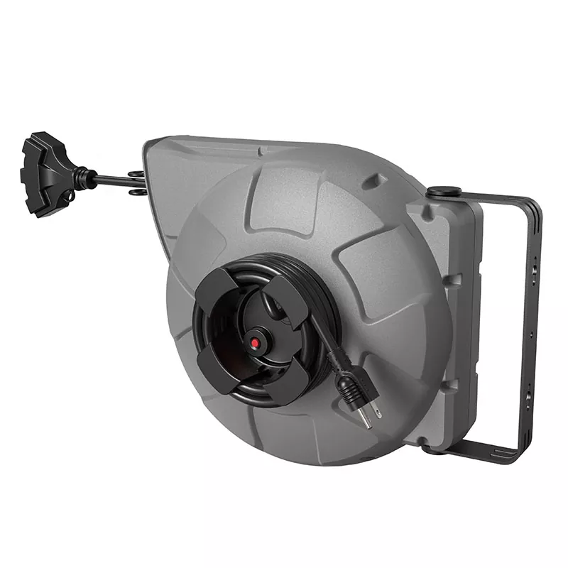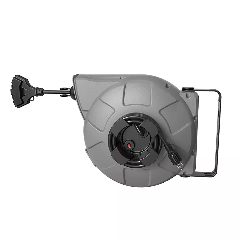 安全な作業環境を実現する内蔵リールストップ (ロック) を備えた、プロのワークショップやホビー用途向けの自動パワーケーブルリールです。